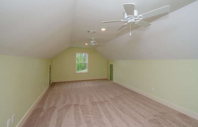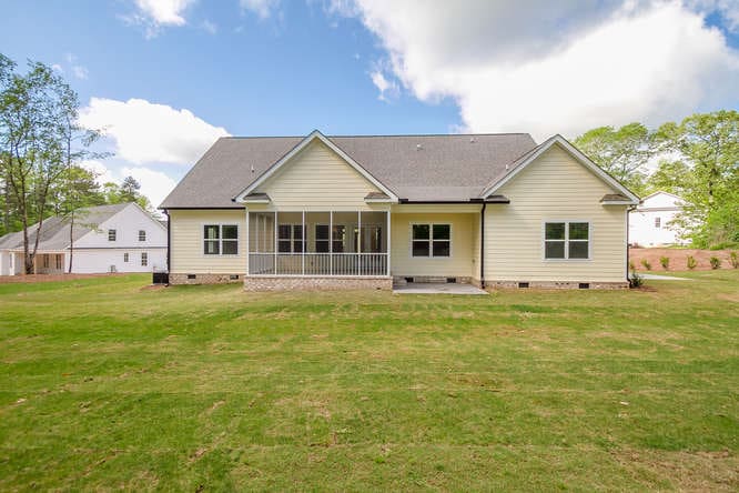 The Owner’s suite is a private retreat featuring a vaulted ceiling and a luxurious bathroom with a curbless tile shower. Three additional secondary bedrooms offer ample space and comfort for family members or guests. The home also includes an additional full bathroom and a convenient half bathroom for guests.
